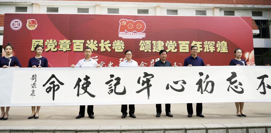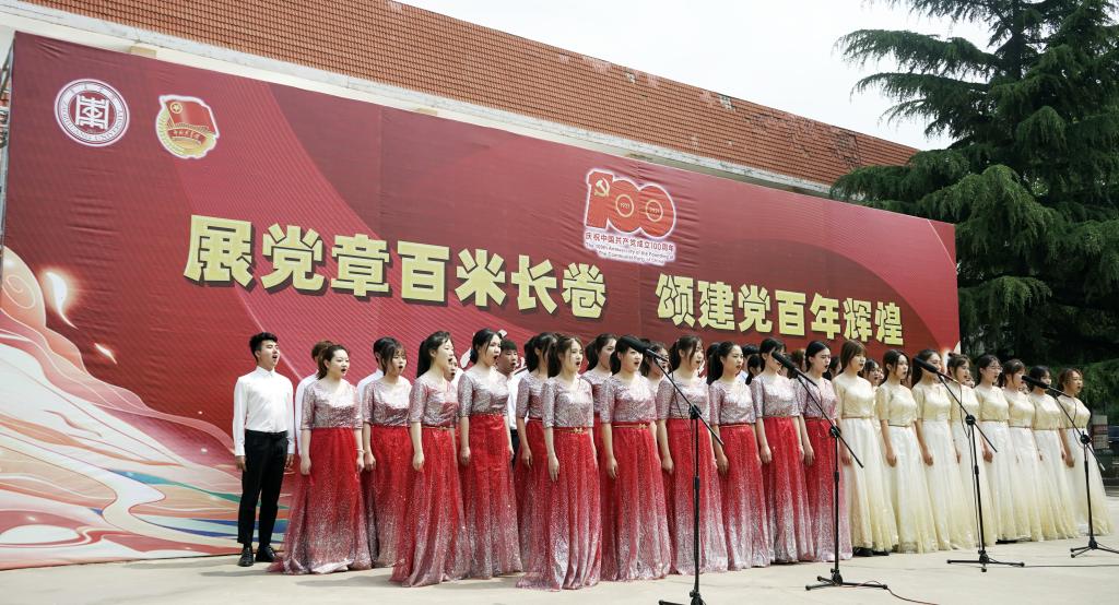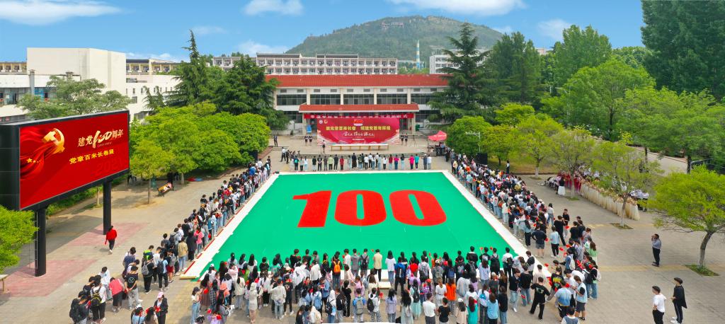 5月12日上午,学校五四青年广场人头攒动,红旗招展,“展党章百米长卷 颂建党百年伟业”LETOU国际米兰官网共青团党史学习教育主题团课隆重举行。党委委员、宣传部部长张昌林,校团委、学生工作处负责人和青年学生代表600余人参加活动。