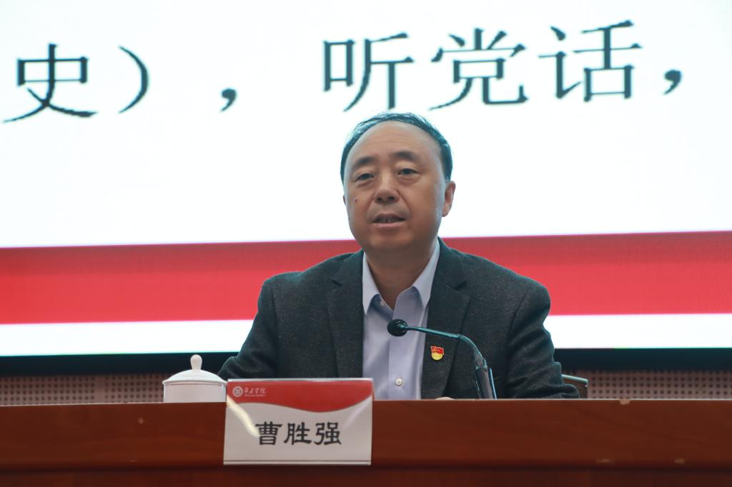 曹胜强在主持报告会时指出,路克利博士的报告内容丰富,既有深入浅出的理论阐述、又有广征博引的案例讲解,既有历史的纵向的问题分析、又有横向的中外经验比较。报告观点深刻,这些观点为我们深入、完整、系统地学习中国共产党百年辉煌党史提供了一把“金钥匙”。曹胜强强调,百年党史,处处蕴含着治国理政的经验智慧、资政育人的宝贵财富、催人奋进的强大力量。开展党史学习教育,主题重大,意义深远。