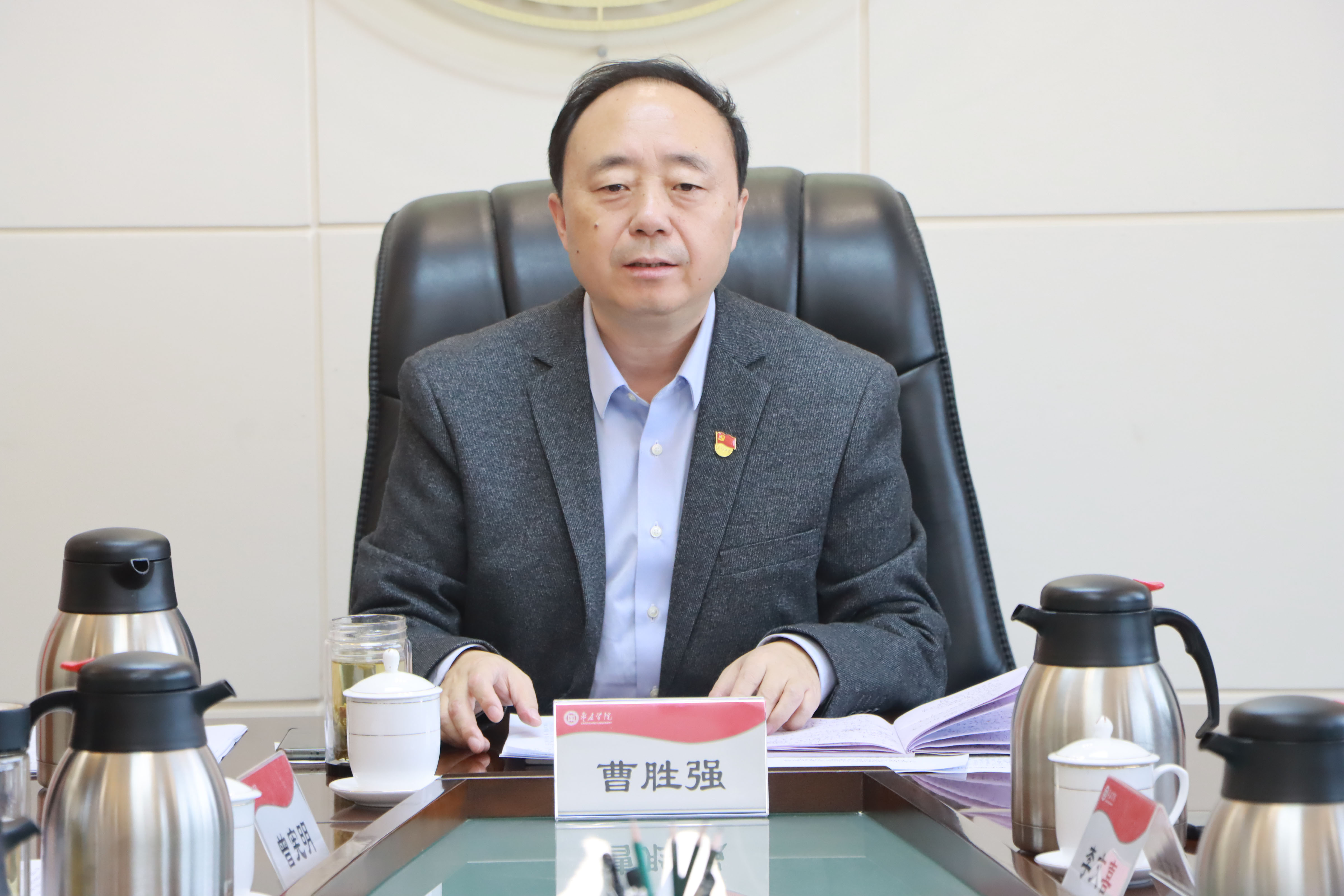 曹胜强指出,全党开展党史学习教育,是党的政治生活中的一件大事,要提高政治站位,结合学校实际高标准、高质量完成学校党史学习教育各项任务。要加强组织领导,成立学校党史学习教育领导小组,加强对各部门和单位的督导检查。要树立正确党史观,准确把握党的历史发展的主题主线、主流本质,旗帜鲜明反对历史虚无主义。要切实为师生和群众办实事解难题。要注重方式方法创新,开展特色鲜明、形式多样的学习教育。要着重抓好青年学生党史学习教育,既要强化党史学习教育的课程化设置,将党史学习教育融入思政课相关课程,又要创新思政课教学方式,同时还要依托学生社团、第二课堂、网络新媒体强化红色文化宣传教育,拓展党史学习教育传播平台。