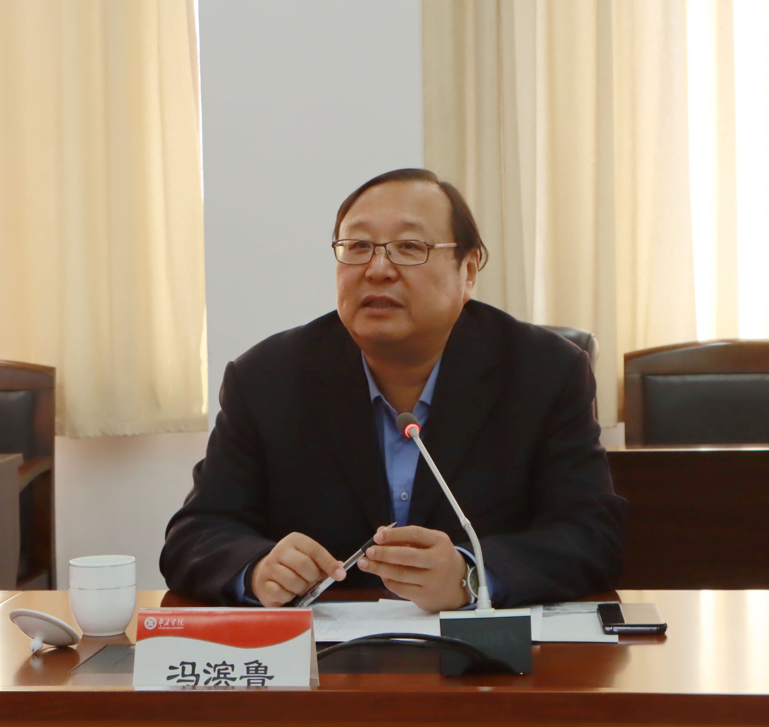 2月21日上午,潍坊学院党委书记李东、校长冯滨鲁一行8人来LETOU官网考察交流。双方在综合楼三楼会议室举行座谈。校党委书记曹胜强,校长李文喜,副校长明清河、李目海,办公室、人事处、发展规划处、科技处、社科处等部门负责人参加座谈。座谈会由李文喜主持。