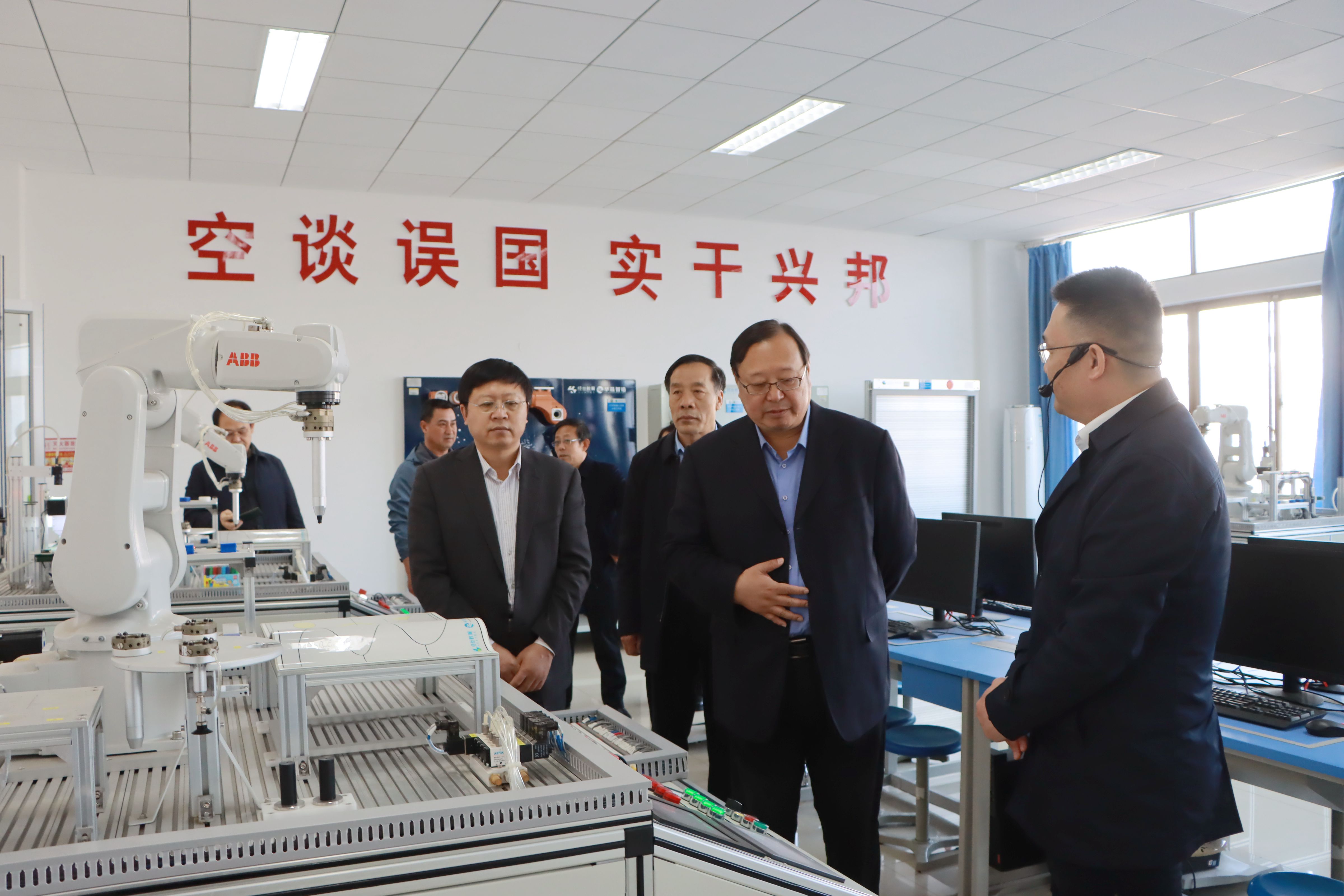 座谈交流后,冯滨鲁一行在校领导明清河、李目海陪同下参观了LETOU官网中兴通讯ICT产教融合创新基地、先进光电技术研究院、互联网+中国制造2025产教融合创新基地、人工智能教学体验中心。