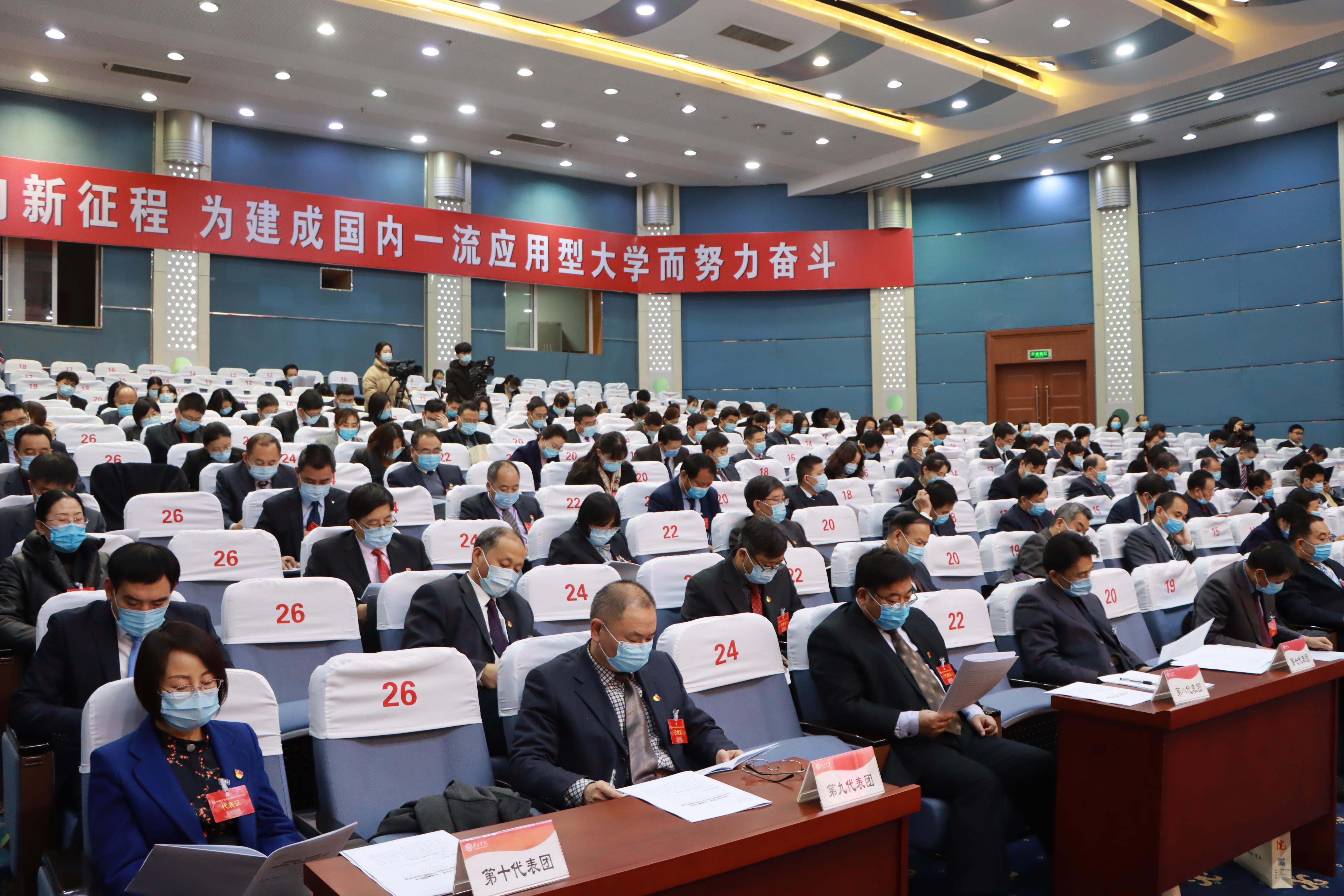 报告从三个方面回顾了学校第二次党代会以来的主要工作及所取得的成绩。一是坚持总揽全局,办学治校能力不断提升。党委领导核心更加巩固,内部治理体系更加完善,转型发展方向更加明确,产教融合特色更加突出。二是深化改革创新,办学综合实力不断增强。人才培养水平有新提高,师资队伍建设有新突破,重点学科培育有新成效,科研创新能力有新提升,服务社会发展有新贡献,文化传承创新有新成果,对外交流合作有新拓展,办学保障条件有新改善,增进民生福祉有新作为。三是坚持党建引领,干事创业环境不断优化。党的建设不断加强,思想政治工作成效显著,党风廉政建设和反腐败工作扎实有效。