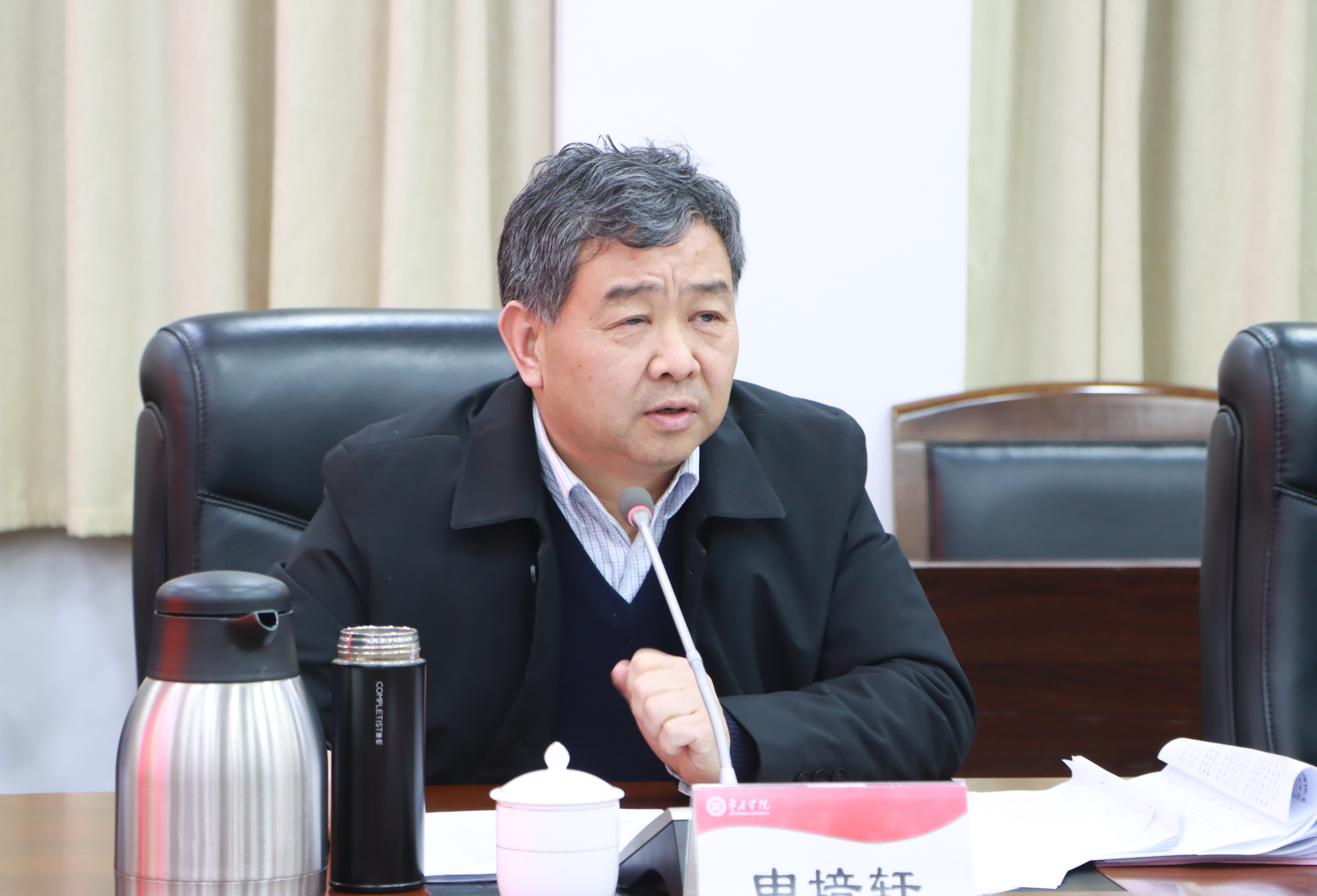 曹胜强代表学校党委班子汇报2019年度民主生活会整改落实情况以及本次民主生活会准备情况,代表学校党委班子作对照检查,并带头开展了批评与自我批评。班子成员依次作个人对照检查,相互指出问题和不足,提出意见和建议。整个过程开门见山,直奔主题。对大家的批评意见,班子成员都表示虚心接受,认真抓好整改工作。