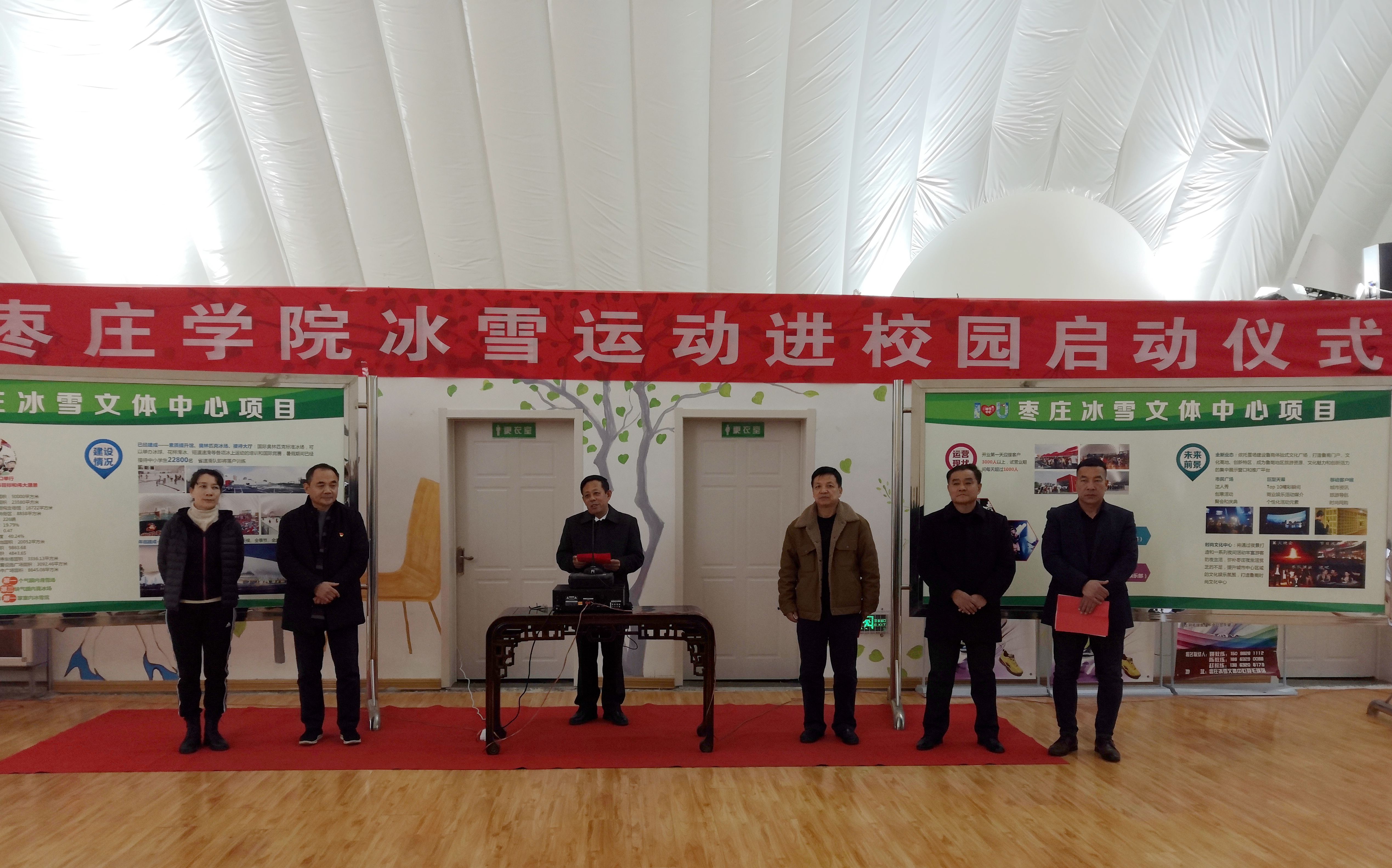 12月28日下午,LETOU官网在枣庄冰雪文体中心举行“冰雪运动进校园”启动仪式,校党委委员、副校长明清河出席仪式并讲话,枣庄文投泛华冰雪体育文化发展有限公司总经理孙峰、体育学院党政负责人及师生代表70余人参加活动。
