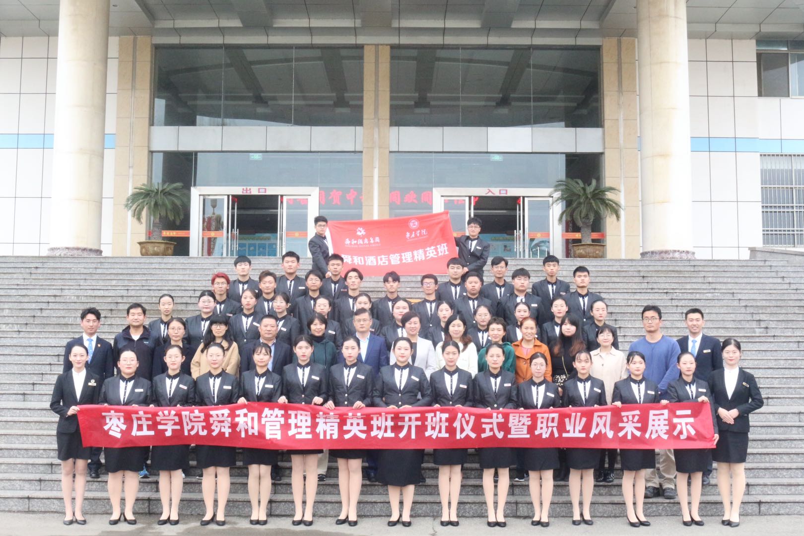 随后,山东舜和集团为2019级旅游管理班学生颁发奖学金,共计7.174万元;2019级舜和酒店管理精英班举行职业风采展示。