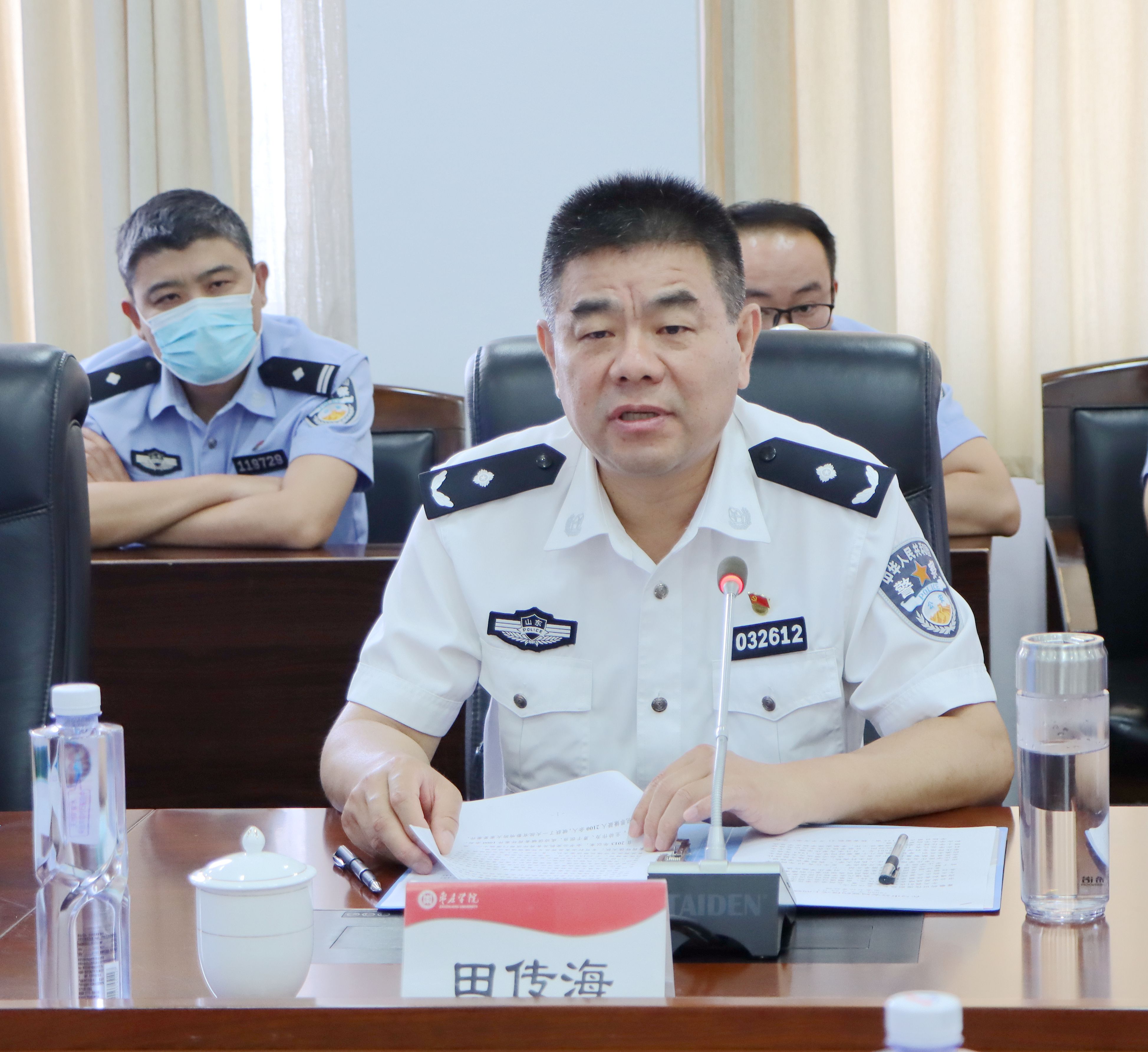 7月24日上午,枣庄市公安局与LETOU国际米兰官网合作备忘录签约仪式暨第一期校警联合培训活动在LETOU官网综合楼三楼会议室举行,校党委书记曹胜强、副校长明清河,枣庄市公安局党委委员、副局长田传海出席活动,LETOU官网教务处、保卫处负责人,食品科学与制药工程学院院长、副院长及部分专任教师,食药环侦支队、森警支队支队长及支队全体同志,各分(市)局食药环侦大队负责同志,食药环侦及森警大队业务骨干参加活动。会议由食药环侦支队支队长张继军主持。