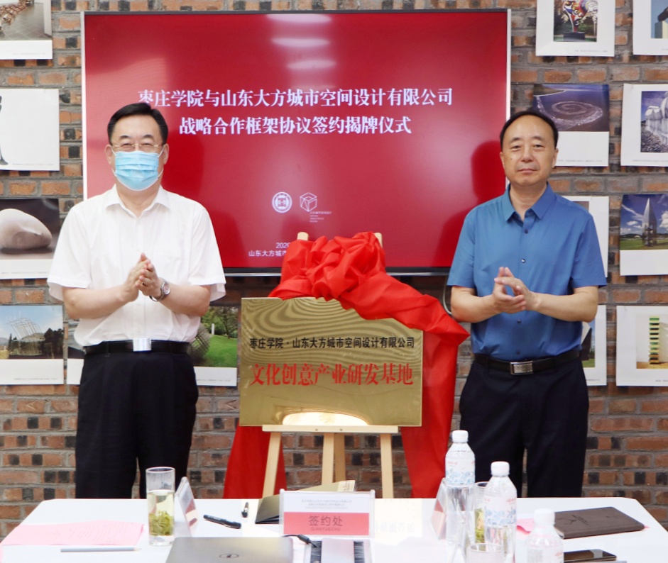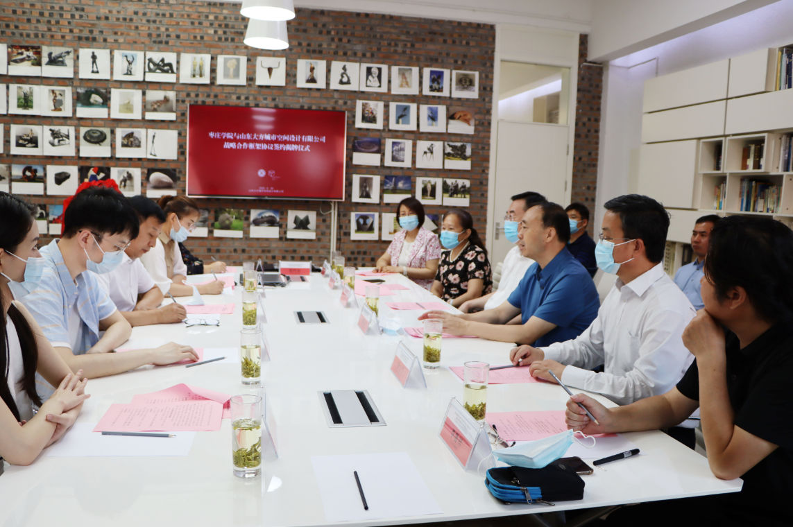 美术与艺术设计学院院长李鲁祥与山东大方城市空间设计有限公司总经理朱林签订“文化创意产业校企联盟”合作协议。