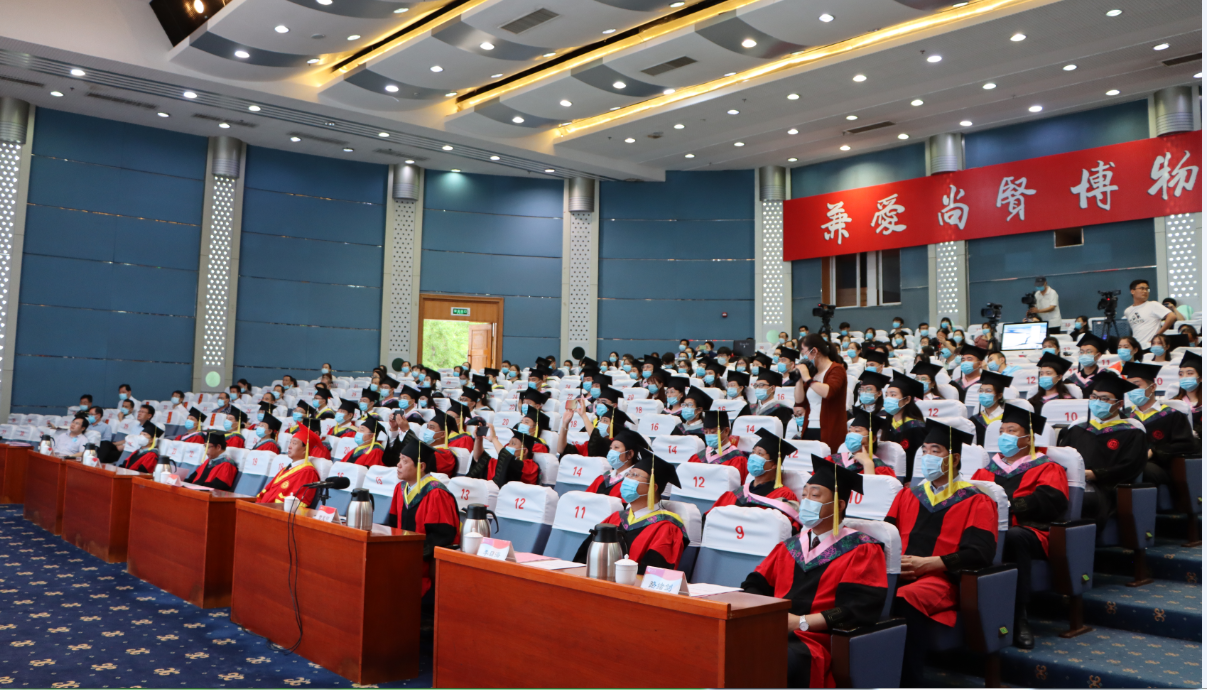 典礼在浓情厚意、充满感动的氛围中顺利落下帷幕。典礼结束后,校领导和毕业生代表在综合楼前合影留念。据统计,共有6万余人次在线观看此次毕业典礼暨学位授予仪式,并为毕业生们送上了美好祝福。曾经,5537名学生怀揣着梦想在这里起航,转眼就要从这里奔向远方。今朝万里学子,明日祖国栋梁,祝愿2020届全体毕业生直挂云帆、乘风破浪,在追梦路上只争朝夕、不负韶华。