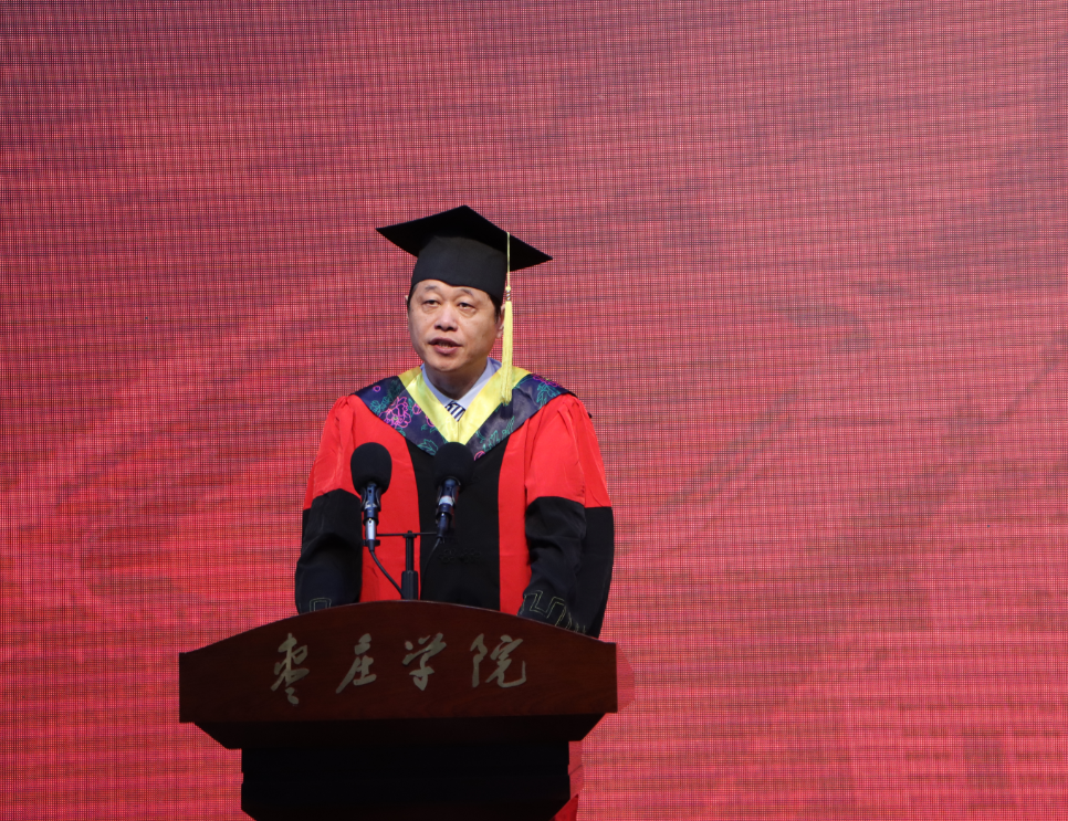 全国人大代表、泰山产业领军人才、光电工程学院赵峰教授作为教师代表发言,向2020届全体毕业生致以衷心的祝贺,并寄语毕业生们一要继续做好在困难和危机中追求希望的精神准备,二要让学习成为一种自觉的生活方式,三要适应社会,具备敏于行动、脚踏实地的实干意识。