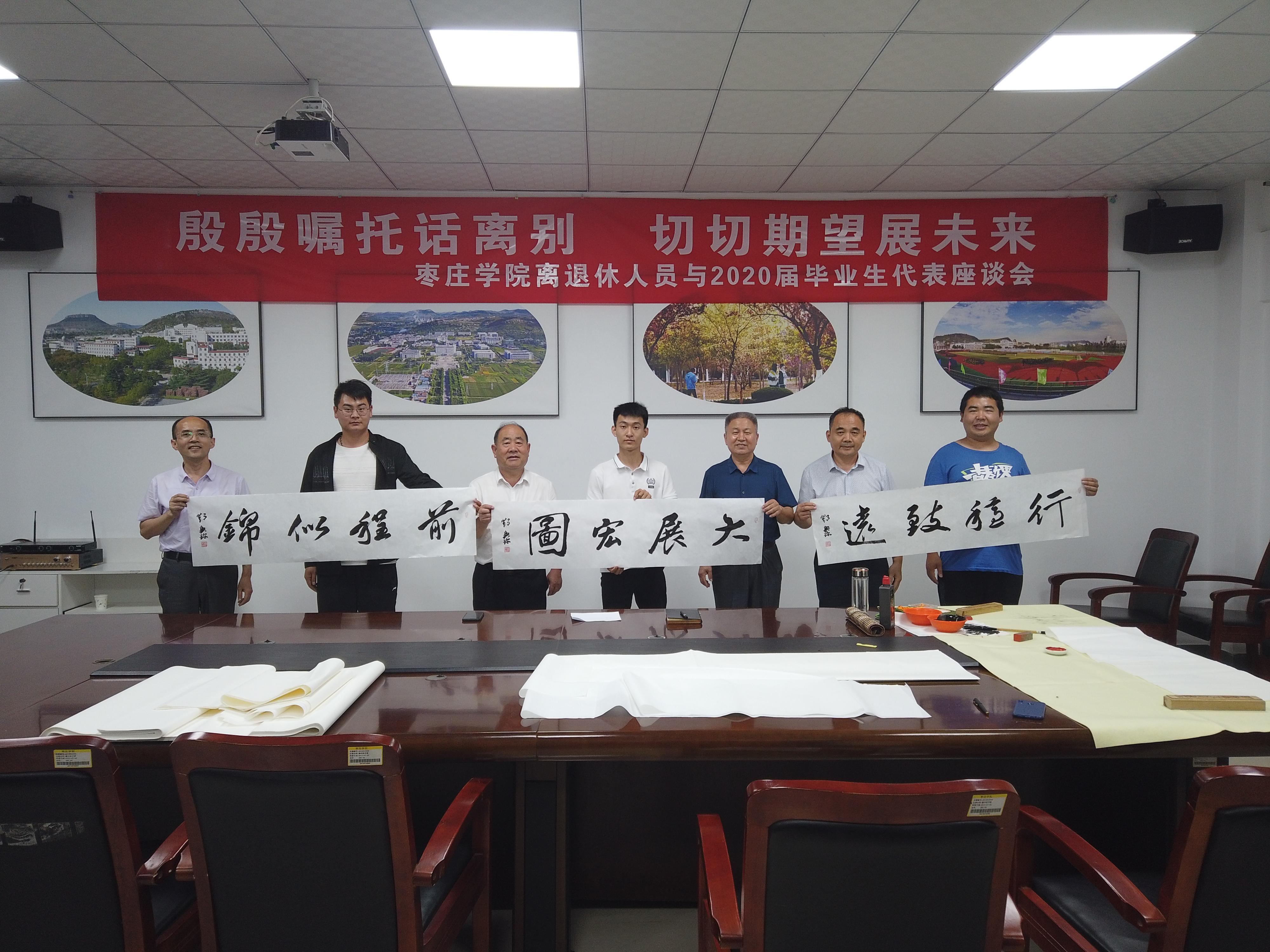 高庆喜在座谈中结合自己的人生经历和工作感悟,用朴实的语言表达了对学校和学生的感情,勉励祝福毕业生要志存高远、登高望远、行稳致远、幸福永远。邓兴珍则现场挥毫泼墨,为在场每一位毕业生书写毕业寄语。离退休同志还带来了关工委编辑的《红色故事选编》,赠送给现场的毕业生。