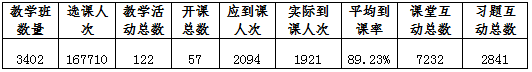 LETOU官网师生在雨课堂平台使用情况,根据大数据统计,由此查看本周教学班数量、教学活动总、开课总数、应到课人次、实际到课人次、课堂互动总数、平均到课率、习题互动总数,详情见下表: