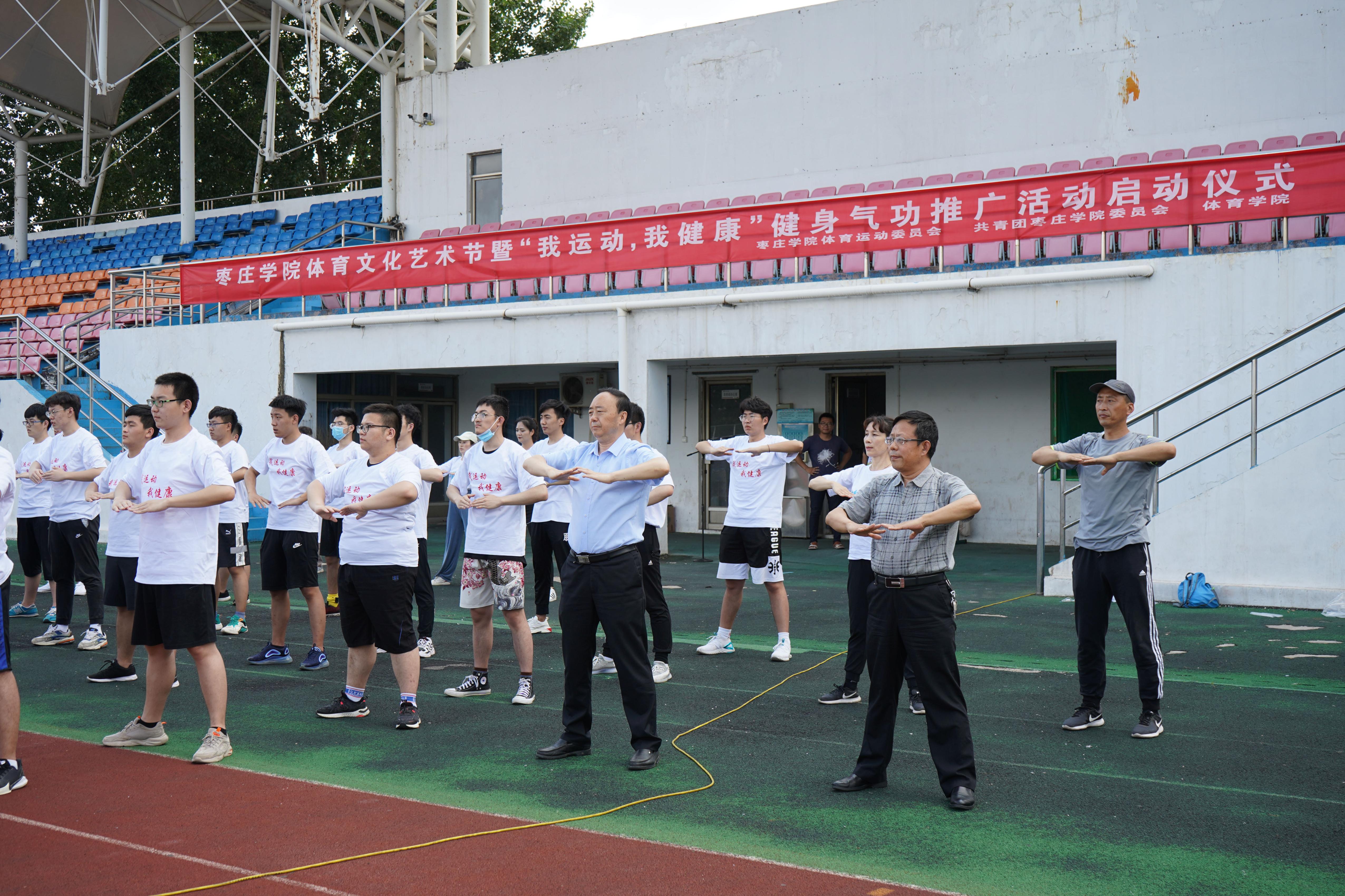 为认真贯彻落实习近平总书记关于统筹推进疫情防控和经济社会发展工作的系列讲话以及《山东省教育厅关于做好疫情防控常态化条件下学校体育工作的通知》精神,积极有序开展学校体育工作,6月10日下午,由LETOU国际米兰官网体育运动委员会、团委和体育学院共同举办的体育文化艺术节暨“我运动,我健康”健身气功推广活动启动仪式在西田径场举行。校党委书记曹胜强、副校长明清河、团委及体育学院负责人出席了本次活动,来自各部门、二级学院的60余名师生参加活动。启动仪式由体育学院副院长李丽主持。