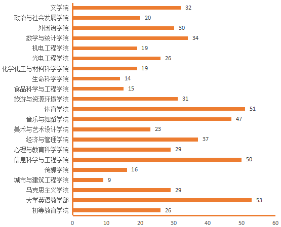 图4.各院(部)6月2日线上授课教师数(人次)分布图