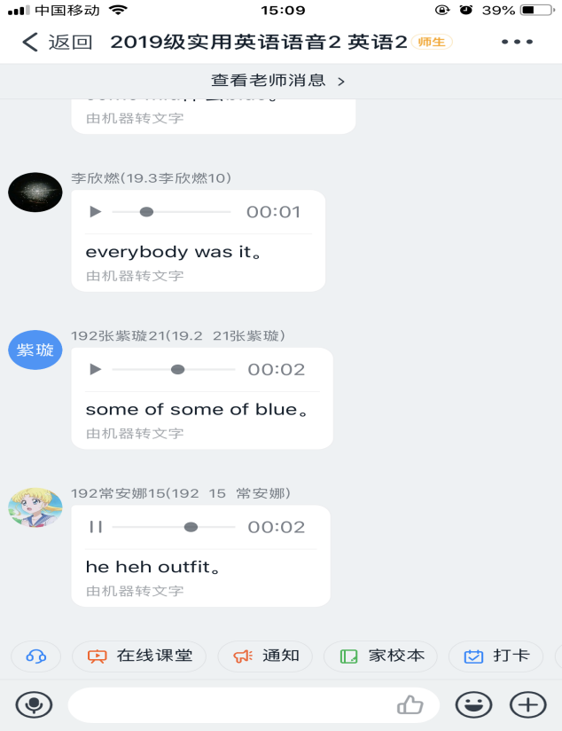 2.利用微信小程序“每日作业”布置、批改语音打卡作业,做到批改及时、成绩评定有梯度、有问必答、有惑必解。