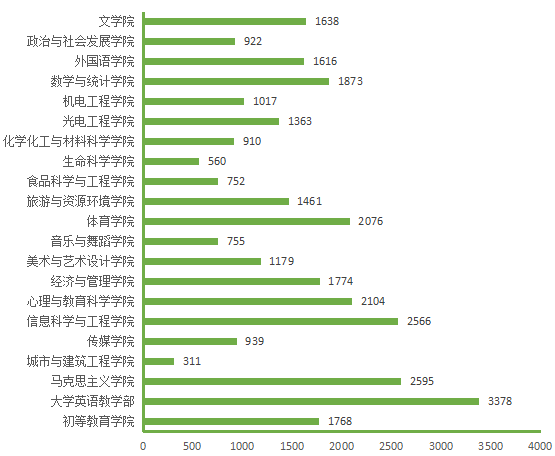 图5. 各院(部)5月26日线上授课学生数(人次)分布图