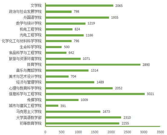 图5. 各院(部)5月21日线上授课学生数(人次)分布图