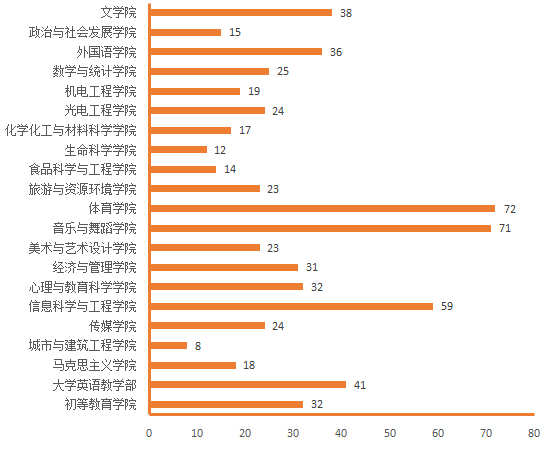 图4.各院(部)5月21日线上授课教师数(人次)分布图