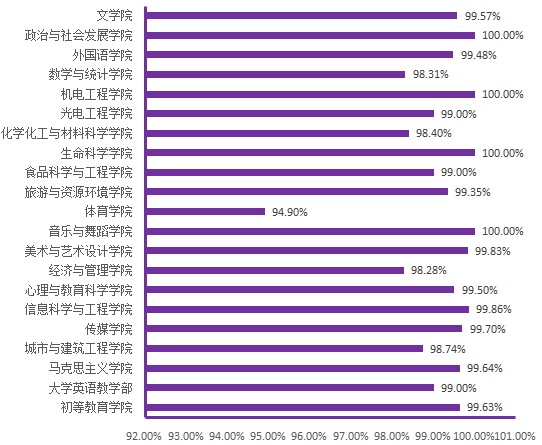 图6. 各院(部)5月21日线上学生上课率分布图