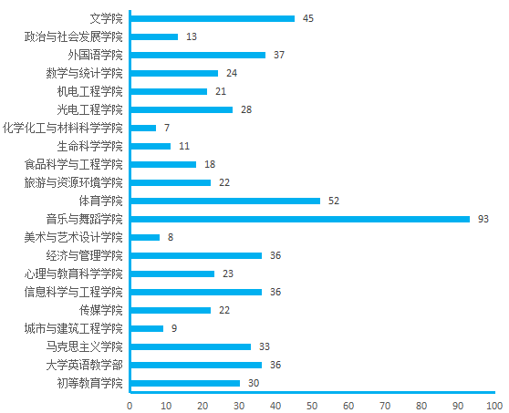 图4.各院(部)5月22日线上授课教师数(人次)分布图