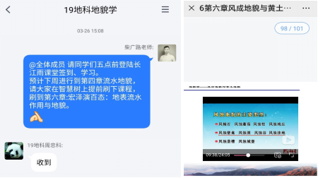 《地貌学》是2019级地理科学专业的专业教育必修课之一,是研究地表形态的特征、成因、发展、结构和分布规律的科学。地貌学课程内容是对高中地理知识和大一上学期地质学基础的延展和加深。本学期由旅游与资源环境学院柴广路老师承担《地貌学》的教学任务。在疫情依然严峻的形势下,按照学校“停课不停教,停课不停学”的要求,柴广路老师积极参加学校组织的“雨课堂”“混合式教学教师培训系列课程”培训,考察了多个在线教学平台和深入了解在线教学与混合式教学的理念、方法和手段后,综合考虑课程特点及学生的基本知识储备基础情况,采用依托长江雨课堂教学平台,辅以课程QQ群和智慧树网站,开展教学活动。具体做法包括: