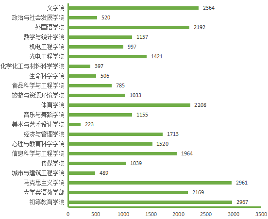 图5. 各院(部)5月22日线上授课学生数(人次)分布图