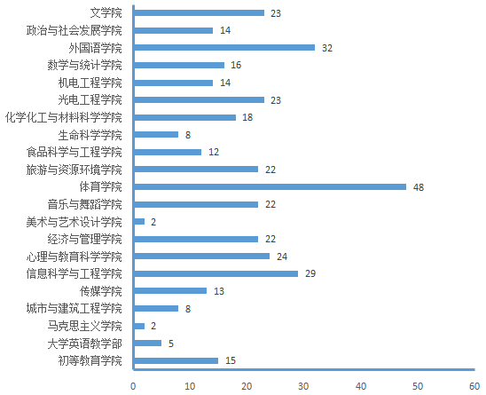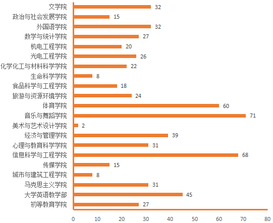 图4.各院(部)5月18日线上授课教师数(人次)分布图