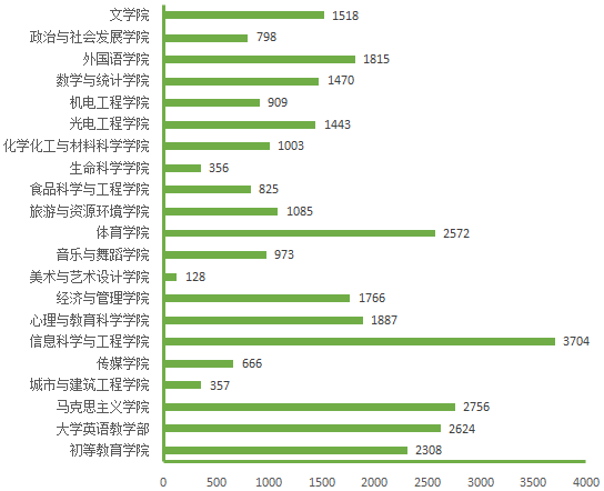 图5. 各院(部)5月18日线上授课学生数(人次)分布图