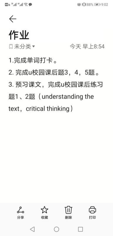 为解决学生没有课本的问题制约,吴老师在每堂课开始前均通过“U校园”平台将词汇录音、课文原文和自主学习任务清单发给学生,鼓励他们通过“U校园”进行充分自学,并按照要求完成单词打卡和课文预习。