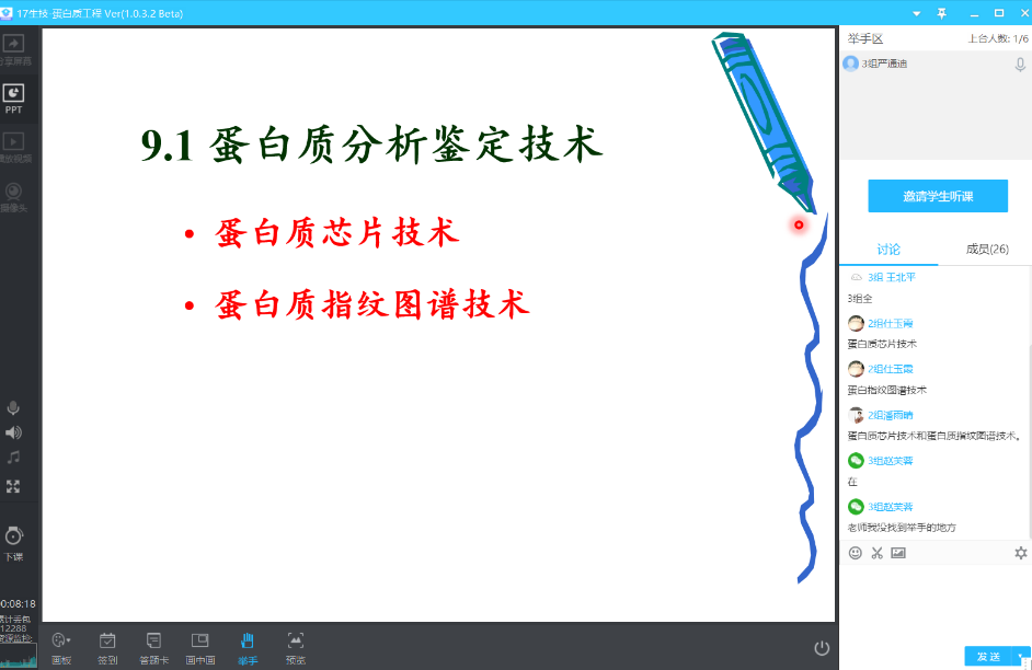 本学期生命科学学院李媛媛老师承担了《蛋白质工程》课程的授课任务,该课程的专业性及应用性较强,是2017级生物技术专业(维真方向)的一门专业方向选修课。在疫情期间,李媛媛老师秉持“停课不停学,隔离疫情不隔离教学”的要求,积极学习线上教学技能并及时调整授课形式,最终确定了“腾讯课堂+QQ学习群”的方式开展本学期的线上教学,其典型做法如下: