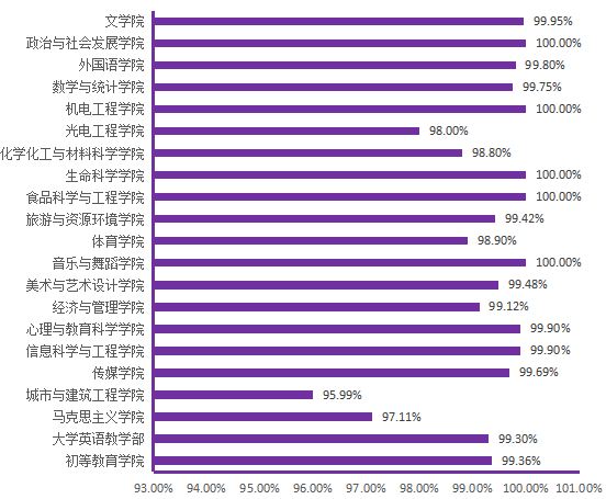 图6. 各院(部)4月29日线上学生上课率分布图