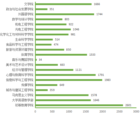 图5. 各院(部)4月29日线上授课学生数(人次)分布图