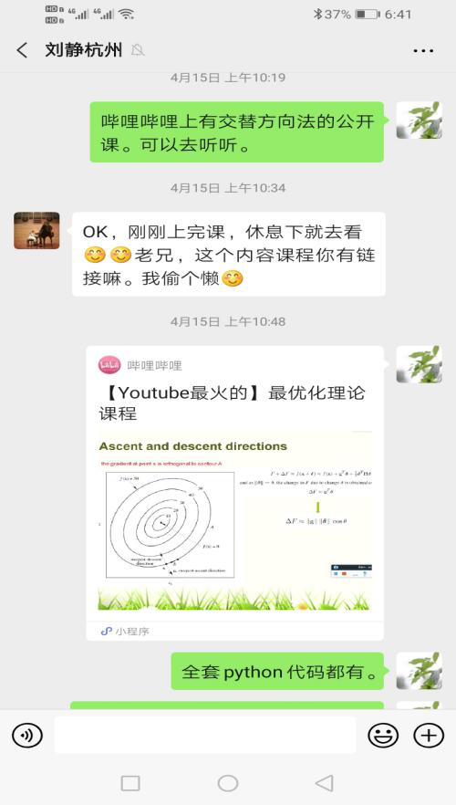 无论是老师的教还是学生的学,高质量的学习资料是基础。目前国内《最优化理论与方法》的学习辅导资料比较少,因此孙敏老师做了如下工作:(1)积极查阅国内外的最优化或运筹学的教科书,力争将知识点讲的深入浅出、娓娓道来;(2)整理了90多页的课后习题辅导资料,并且还在不断补充中;(3)针对所采用的教材,制作了完整授课PPT;(4)本课程是2+2的学时,但是目前无法进行上机操作,因此孙敏老师编写了所用教材涉及算法的程序,包括Matlab版本和Python版本,同时在上课过程中在每章的最后一次课集中讲授算法软件的实现,手把手地教会学生。