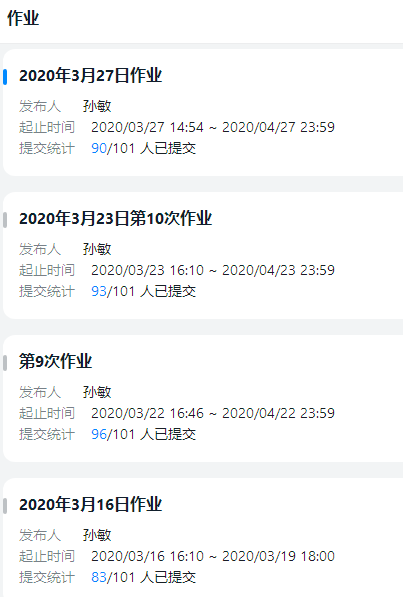 孙敏老师利用钉钉进行授课和答疑,积累了许多视频资料。每次上课,孙敏老师提前10多分钟进入课堂,回答同学们的问题;上课开始时,利用word的审阅功能,并借助自购的手写板,先讲解上次的作业,再利用1个多小时的时间进行内容的讲解;每次授课完毕都布置作业,积极批阅作业并公布优秀作业。