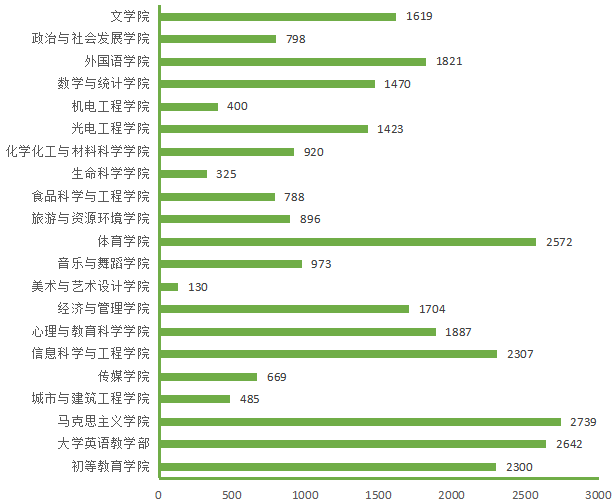 图5. 各院(部)4月26日线上授课学生数(人次)分布图