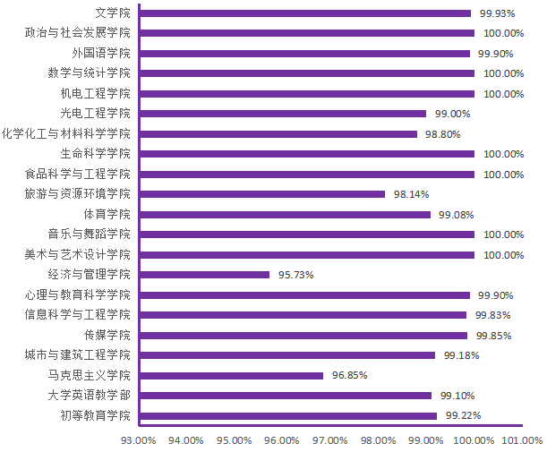 图6. 各院(部)4月26日线上学生上课率分布图