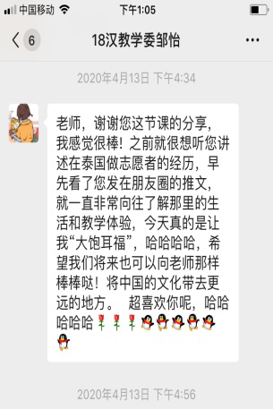 面对疫情特殊时期的教学,如何适应网络新模式,如何保证教学效果,这都是我们每位教学一线的老师需要适应、思考并实践的。俗话说的“一个篱笆三个桩,一个好汉三个帮”,面对问题,汉语国际教育教研室成员抱团成长,共同研讨,不断调整教学方式和教学方法,齐心涤虑,砥志研思,持续改进教学效果。
