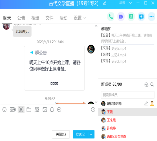 “QQ 直播+录屏”线上授课模式: