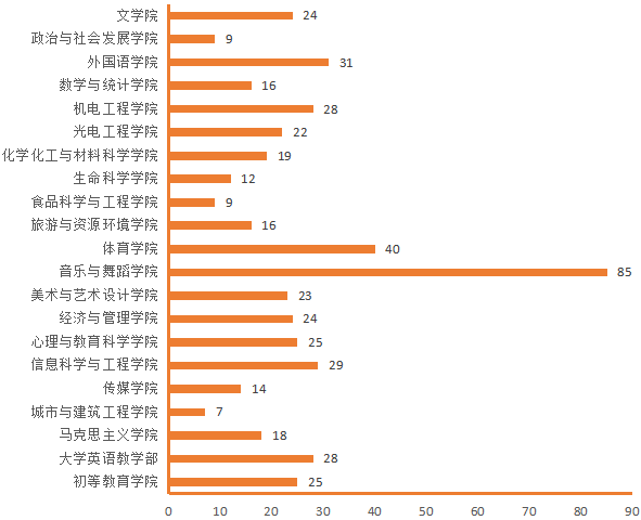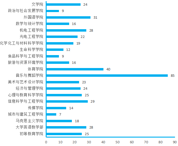 图4.各院(部)4月22日线上授课教师数(人次)分布图