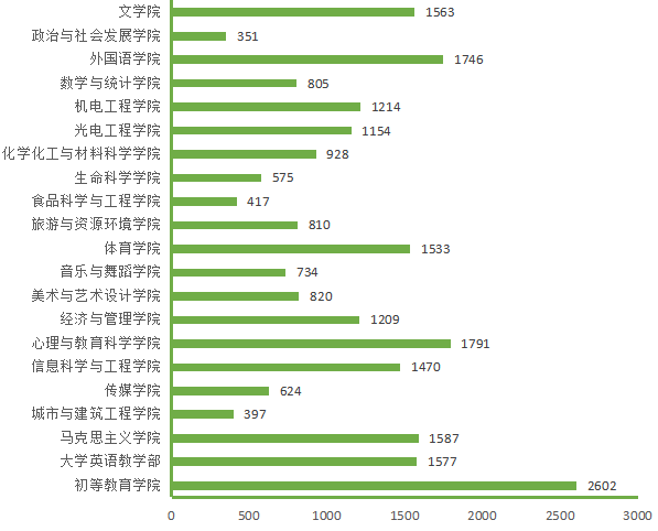 图5. 各院(部)4月22日线上授课学生数(人次)分布图