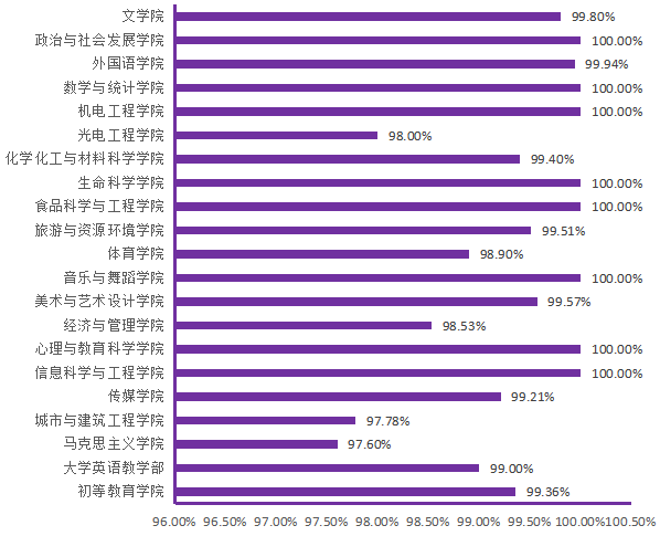 图6. 各院(部)4月22日线上学生上课率分布图