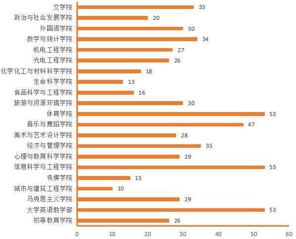图4.各院(部)4月21日线上授课教师数(人次)分布图