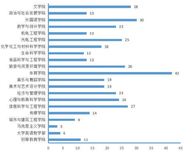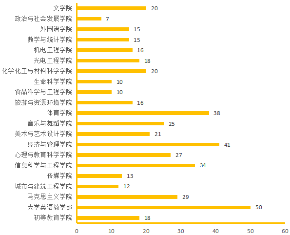 图4.各院(部)4月14日线上授课教师数(人次)分布图