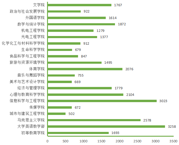 图5. 各院(部)4月14日线上授课学生数(人次)分布图