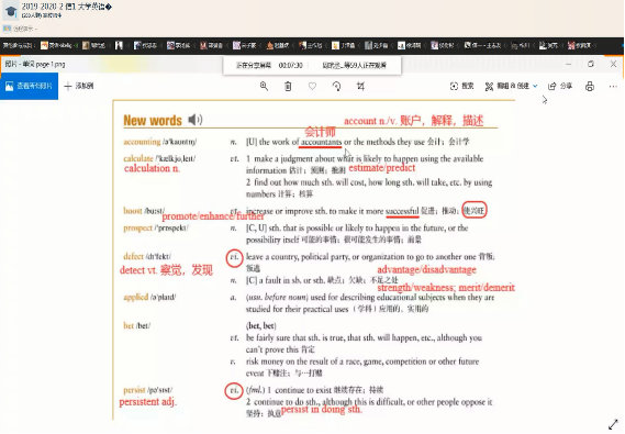 与此同时,在线上教学的备课中,考虑到有的学生没有电脑,无法同时听课并打开电子教材,因此,在教学中尽量把课本内容呈现在PPT中,并使用画笔或word文档等工具进行标注讲解。