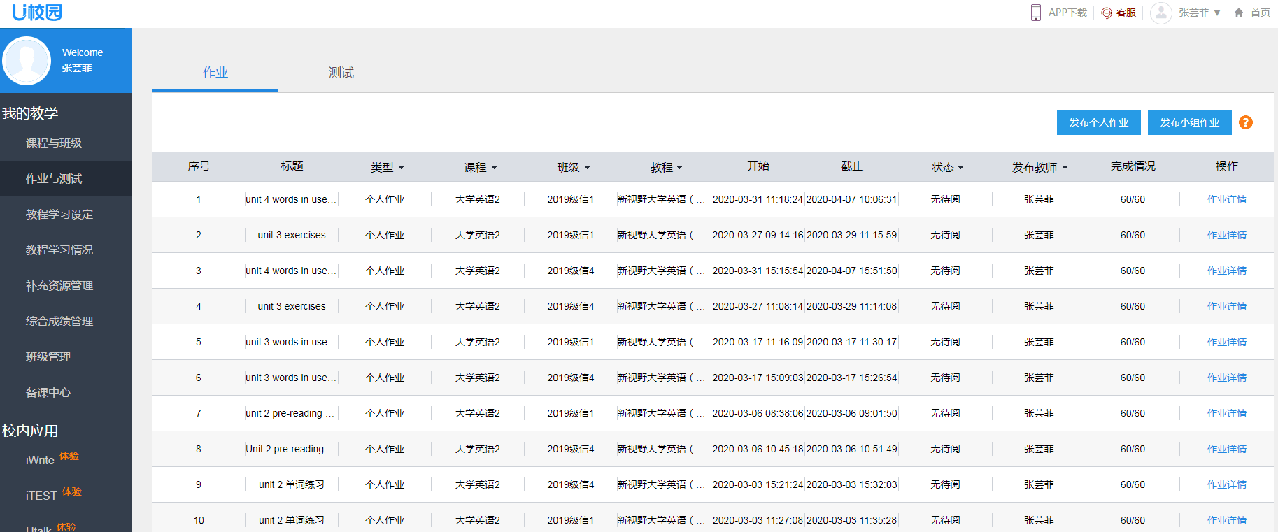 其二,通过U校园和QQ群作业发布课后作业,包含听力、阅读、写作、语法、词汇等内容,并及时进行标注与批改,出现的问题会在下次上课时进行统一讲解。