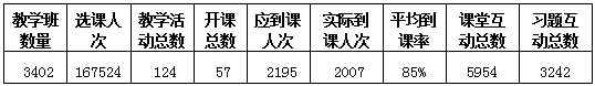 LETOU官网师生在雨课堂平台使用情况,根据大数据统计,由此查看本周教学班数量、教学活动总、开课总数、应到课人次、实际到课人次、课堂互动总数、平均到课率、习题互动总数,详情见下表: