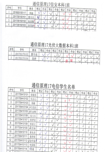 《通信原理》课程的线上教学进展顺利,与学生的配合密不可分,令人欣慰的是绝大多数同学在家中能够自觉认真的按照老师要求进行学习,认真做笔记,积极完成作业。下一步为了掌握学生线上学习效果,拟定在三个教学班中开展“阶段性检测”,做好开学后线下教学与线上教学的衔接。