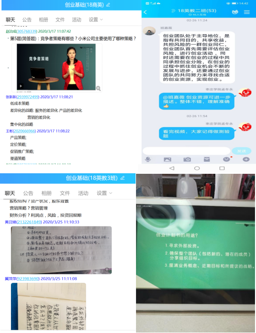 《创业基础》是创新创业模块的必修课程。在当前“大众创业,万众创新”的环境之下,创业已经成为解决大学生就业问题的重要途径之一。因此,本门课程的目标,就是通过让学生学习有关创业的知识,了解创业的基本流程,从而增强自主创业意识,并最终在今后加以实践。由于本门课程不属于专业课程的范畴,因此如何在不与学生见面的情况下提高学生学习非专业课的积极性,是本门课程需要着重解决的问题。针对此情况,外国语学院《创业基础》课程团队采取了“录课+慕课堂签到+中国大学慕课视频+QQ群问题抢答+课后反馈”的形式,开展了混合式在线教学。