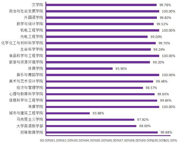 各院(部)的开课数、开课门次、班级数、教师数(人次)、学生数(人次)和学生上课率情况如下图所示: