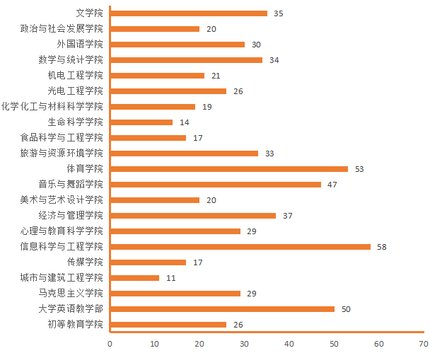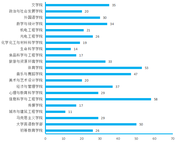 图4. 各院(部)3月24日线上授课教师数(人次)分布图